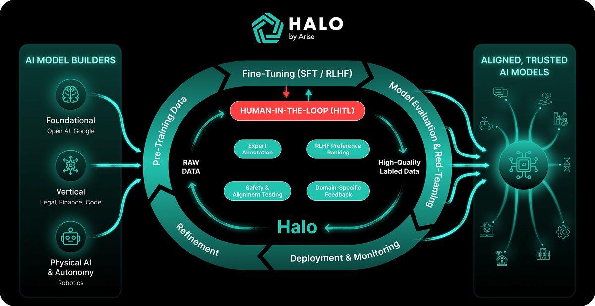 Powered by Arise’s global workforce, Halo delivers precision, scalability, and security for mission‑critical AI programs.
